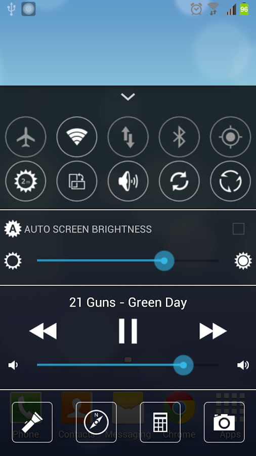 Easy Controller like IOS7 Control Center, it is a panel which look like notification bar, but it location at bottom(or left, right).Your can open it any where on screen, so can easily change phone setting, play/stop music, start app and so on.